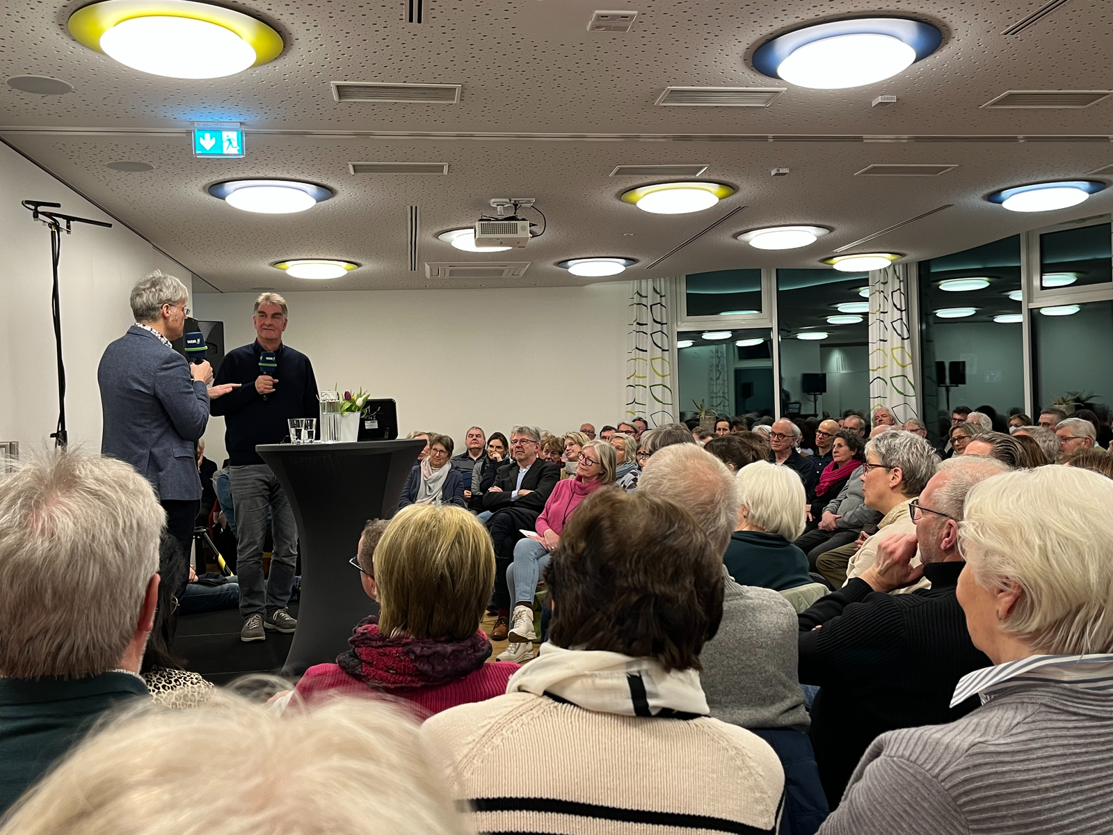 Am Montag, 2.2.2026 pünktlich um 19:04 Uhr startete die beliebte WDR-5-Sendung „Das Philosophische Radio" live in der Akademie Gegenwart am Gesundheitszentrum Walstedde. Moderator Jürgen Wiebicke und Michael Quante, Professor für Philosophie an der Universität Münster diskutierten – mal sehr humorvoll, mal sehr ernst – vor voll besetzten Rängen mit den begeisterten Zuschauern über die vielfältigen Aspekte des Alterns, das unweigerlich mit dem Tod abschließe.